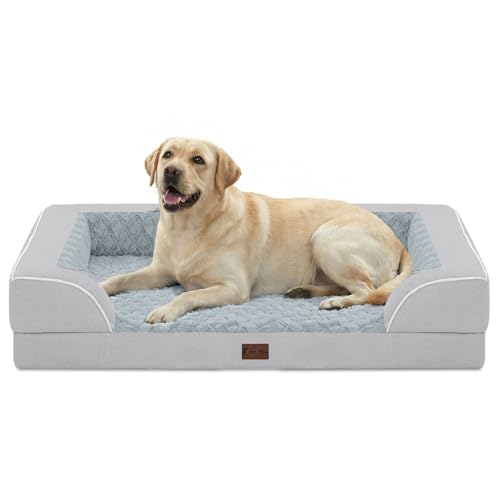 Casa Paw Orthopedic Dog Beds for Extra Large Sized Dogs, Waterproof Memory Foam XXL Pet Bed 48x30Inch, Non-Slip Bottom and Egg-Crate Foam Dog Couch Bed with Washable Removable Cover, Light Grey