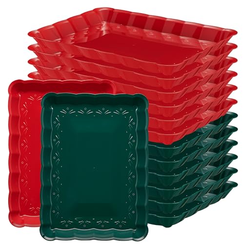 Plasticpro Plastic Serving Trays - Serving Platters Rectangle 9X13 Disposable Party Dish Includes 12 6 Green & 6 Red Christmass Traus
