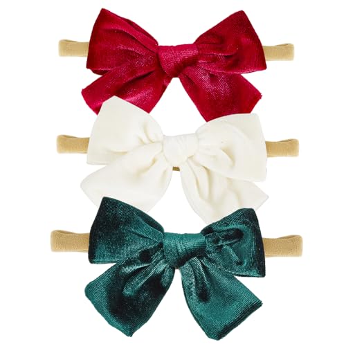 hoyuwak 3 PCS 4" Velvet Baby Bows Elastic Baby Christmas Bow Nylon Headband for Newborn Girl Christmas Gift