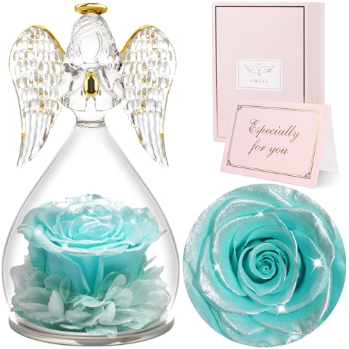 Sunia Christmas Rose Gifts for Women, Preserved Flower Birthday Gifts for Mom Grandma, Forever Roses in Glass Angel Figurines Fresh Flowers for Delivery Gifts for Thanksgiving Mother's Day Valentine