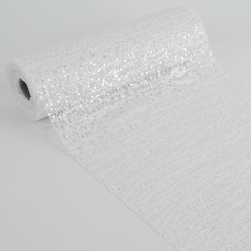 HUIHUANG White Christmas Ribbon 10 inch Wide Glitter Deco Mesh Ribbon White Mesh Fabric for Christmas Tree Decorations, Garlands, Large Bows, Large Box Wrapping- Continuous 10 Yards