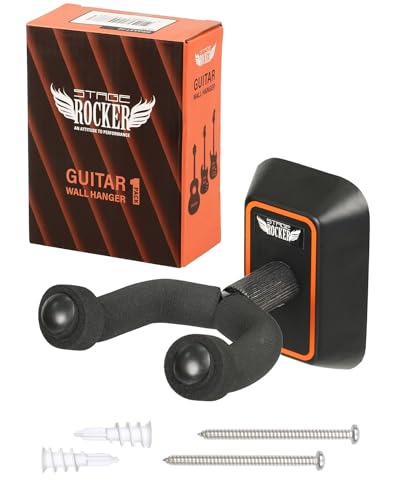 Stage Rocker Guitar Wall Hanger - Wall Mount Holder for Acoustic, Electric Guitar, Bass, Banjo, Mandolin with Black Mounting Plate (Orange Frame)