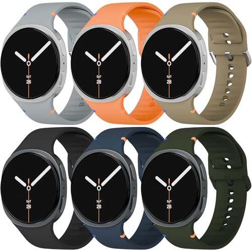 6 Pack Sport Bands Compatible with Samsung Galaxy Watch 8 Band 40mm 44mm/Galaxy Watch 8 Classic 46mm, Soft Silicone Replacement Strap for Samsung Galaxy Watch 8/8 Classic for Women Men