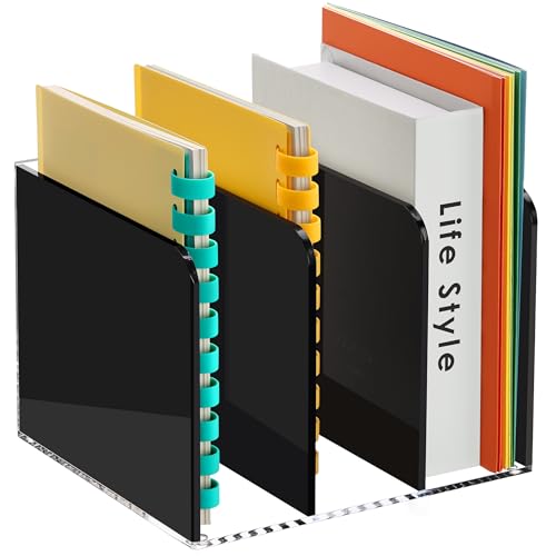 SANRUI Acrylic Magazine File Holder Desktap Organizer, Clear Folder Rack Workspace Document Sorters, Bookend File Office Accessories Organization Storage, (Black 3 Vertical Compartments)
