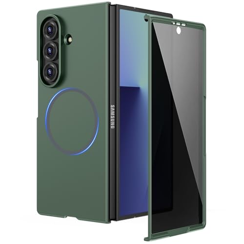 Ruky for Galaxy Z Fold 7 Full Body Case, Hard PC Shockproof Cover with Built-in Privacy Screen Protector & Compatible with MagSafe Protective Phone Case for Samsung Galaxy Z Fold 7 5G, Green