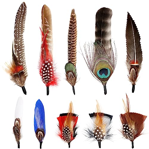 SendyFeather Hat Feathers 10 Styles Natural Assorted Feathers for Fedora Hats Accessories DIY Craft,Western Cowboy Hats,Christmas Party Hats,Oktoberfest Hats