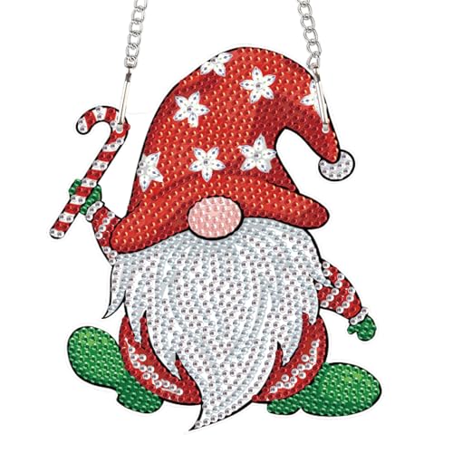 AiYuanzsh DIY 5D Christmas Diamond Art Hanging Sign, Gnome Rhinestone Pendant Kit for Holiday Wall Door Window Decor, Diamond Painting Ornament for Seasonal Home Decoration