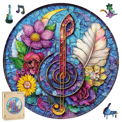 Reouinty Wooden Puzzles for Adults 500 Piece, Flower Guitar Puzzle for Mom, Challenging Puzzle, Luxurious Shaped Wooden Puzzles for Family Game 16.5 * 16.5in
