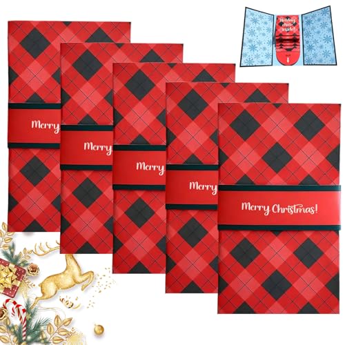 BSpecter 5Pcs Handmade Christmas Gift Card Booklet, Handmade ChristmasGift Card Holder Book, Christmas Money Holder Envelope Booklet, DIY XmasGift, Party Gift Supplies