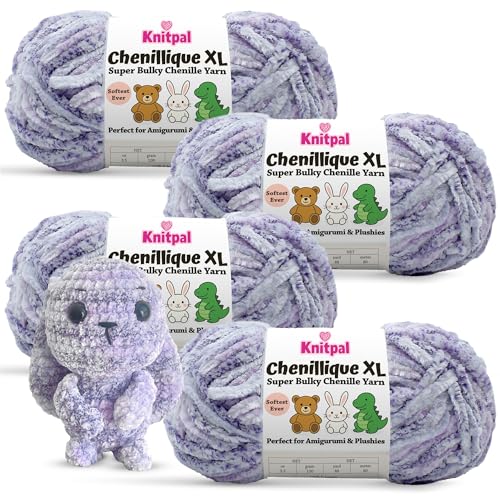 Chenillique XL Plush Chenille Yarn – 4-Pack (352 Yards / 400 g) – Variegated Super Bulky Yarn for Plushies, Blankets, Amigurumi & Accessories - Lavender Bliss