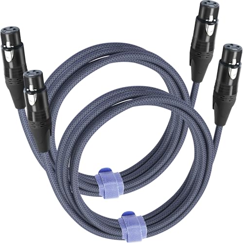 HUALEU 2 Pack 3Pin Female to Female Balance Audio Cable,110 ohm 3-Pin Mic Patch Cables,XLR Female DMX Cable Patch Cords for Audio and Sound Equipments-10Feet