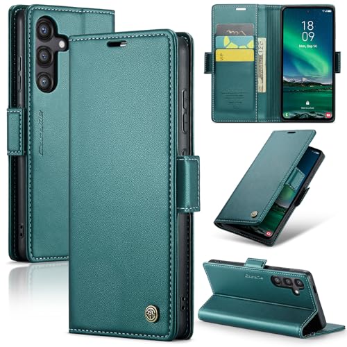AUPAI for Samsung Galaxy S25 Wallet Case with Credit Card Holder, PU Leather RFID Blocking Folio Flip Kickstand Magnetic Clasp Protective Phone Cover for Women Men Cyan