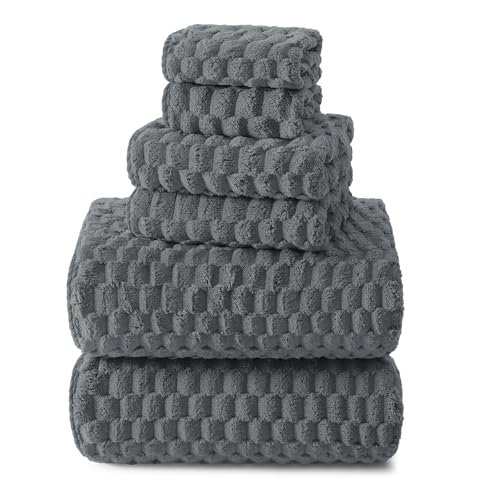 REDKISS Gray Bath Towel Sets XL - 35"x70" Extra Large Bathroom Towels of 6, Super Soft Oversized Bath Sheets for Adults, Waffle Microfiber Baths Towels Set, Luxury Shower Towel for Bathroom Hotel