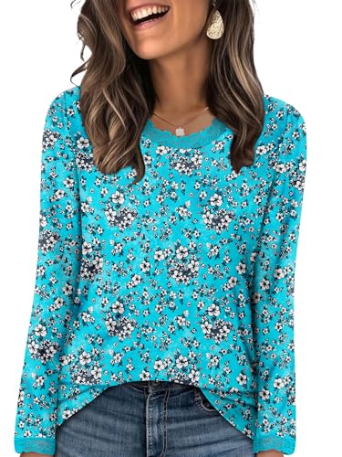 CRAZY GRID Womens Casual Long Sleeve Sweatshirt Crew Neck Cute Pullover Relaxed Fit Tops Blouses Loose Fitting Tees Fashion Clothing Sweatshirts BlueFlower Large