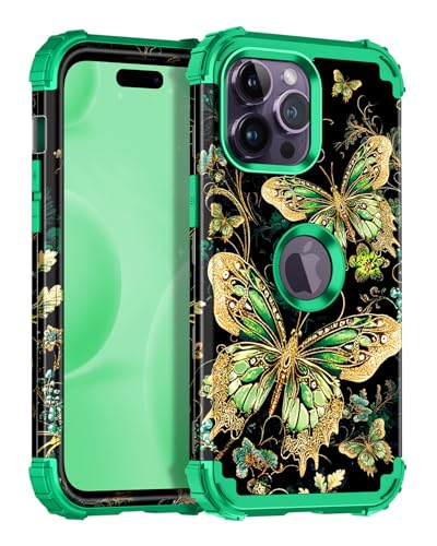Casetego for iPhone 14 Pro Max Case,Glow in The Dark Three Layer Heavy Duty Sturdy Shockproof Full Protection Rugged Hard PC+Soft TPU Bumper Case for Apple iPhone 14 Pro Max 6.7 inch,Green