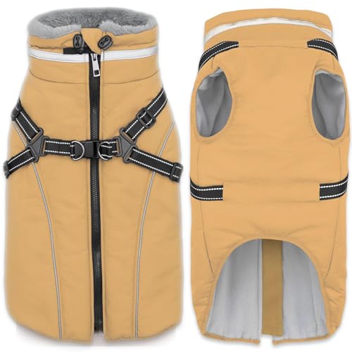 Fragralley Dog Coat with Harness Built in, Waterproof Windproof Reflective Warm Puffer Jacket, Fleece Lined Vest Winter Parka for Small, Medium, Large Dogs