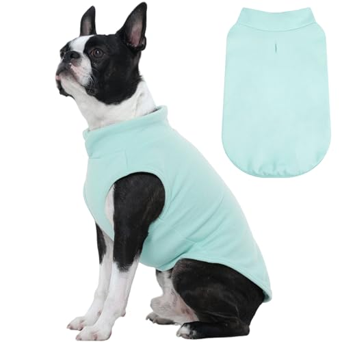 FUAMEY Dog Fleece Vest for Medium Dogs,Warm Stretchy Dog Sweatshirts Pullover with Leash Hole Dogs Sweater Soft Pet Turtleneck Cozy Pet Vest Lightweight Sleeveless Blue M