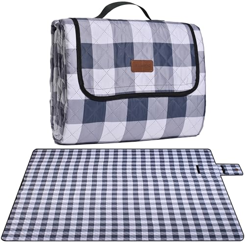 Extra Large Picnic Blanket 80''x 60'' Picnic Mat Waterproof Sand Proof Foldable for Beach, 5-Layer Outdoor Blanket for 6 to 8 Adults,Camping Lawn Hiking Travel Park Music Festival Wedding Mats(Gray)