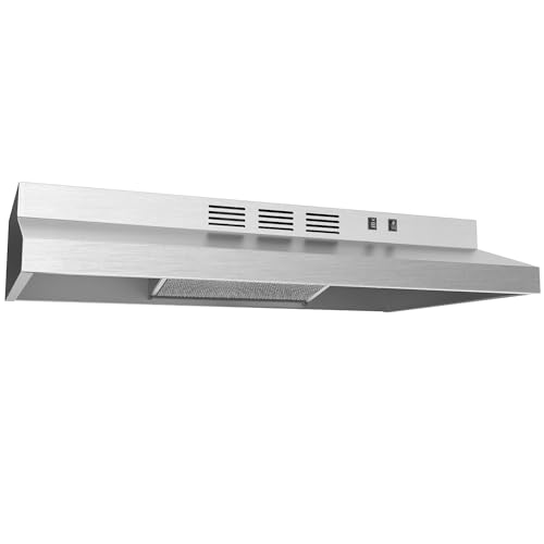 Midea MVU30W2AST Range 30 Inch Under Cabinet Vent Ductless Convertible with Durable Stainless Steel, 200 CFM Kitchen Hood with 2 Reusable Filter, 2 Speed Exhaust Fan