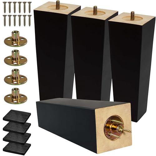 CODIN (5 Sizes: 3"-4"-5"-6"-8" Set of 4 Wood Furniture Legs - Square Sofa Legs, Couch Leg - Brown Mid-Century Modern Replacement Legs for Armchair Recliner Coffee Table Dresser (8")
