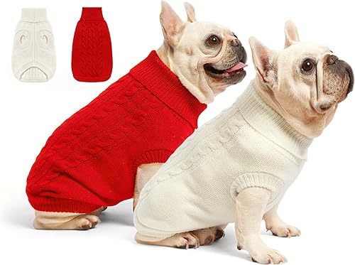 Roseelk 2 Pack Dog Sweaters for Small Dogs - Puppy Medium Warm Clothes in Winter, Turtleneck Pullover Design for Boy Girl Pet, Doggie, Cat, Kitten Chihuahua Bulldog Pug Beagles (M, Red, Beige)