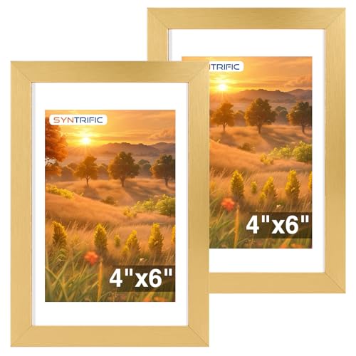 SYNTRIFIC 4x6 Picture Frame Set of 2,Display Pictures 3x5 with Mat or 4x6 Without Mat,Wall Hanging Photo Frame or Tabletop Display,Gold