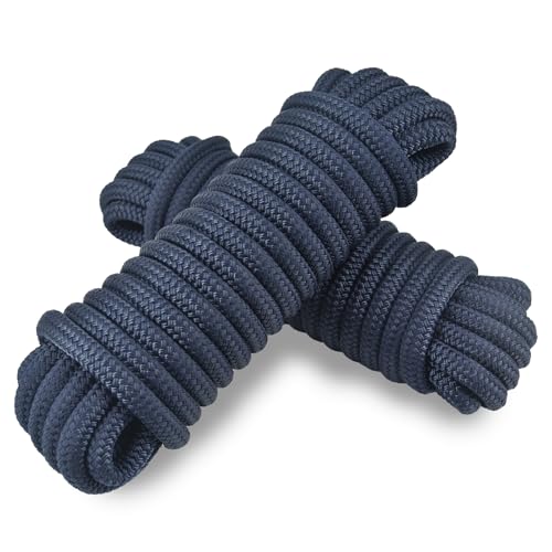 TetherTite 5/8" x25' Boat Dock Lines,Double Braided Nylon Boat Dock Lines with Loop, Mooring Line Marine Rope (2 Pack,Navy Blue)