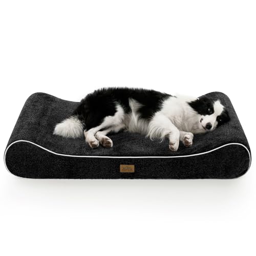 COZY KISS Orthopedic Dog Bed for Extra Large Dogs up to 140 lbs - Removable Washable Cover with Waterproof Lining, Cotton-Polyester Blend Boat-Shaped Lounger Mattress, XL(51x36x8in), Black