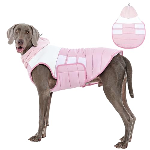 FUAMEY Cold Weather Dog Coat Pink XXL, Snow Jacket Large Dogs, Easy On with Side Straps, Adjustable Fit for Active Movements,(2XL-Pink)