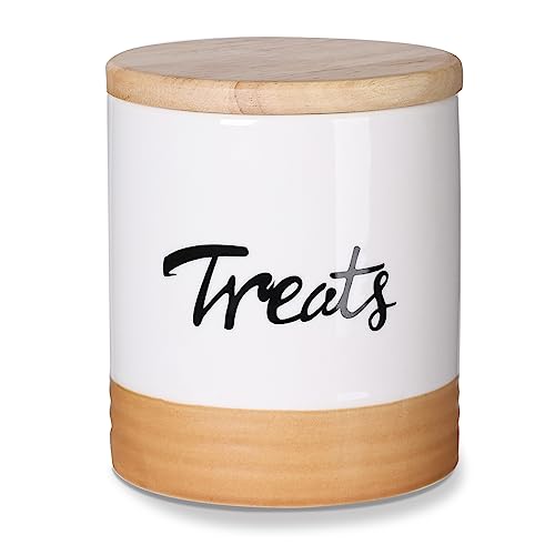 LEETOYI Cat Treat Container with Lid, Ceramic Dog Treat Jars Modern, Farmhouse Kitchen Decor, Cat Treat Storage Caddy Organizer, 4.5 Inch 31oz White