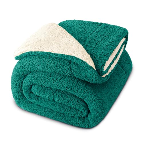 Exclusivo Mezcla Reversible Twin Size Sherpa Blanket, Thick and Warm Fleece Blankets for Winter, Soft Plush Fluffy for Bed, 60x80 Inches, Emerald Green/White