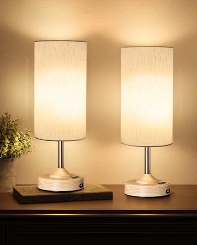 Rechargeable Table Lamp, 2-Pack, Ambient Light, Dimmable, 2700K, Timer, Touch Control, Portable, LED, Wireless, Cordless e, Battery Operated, Desk Lamp, Kitchen Lamp, Fabric Shade, Wood-Grain Finish