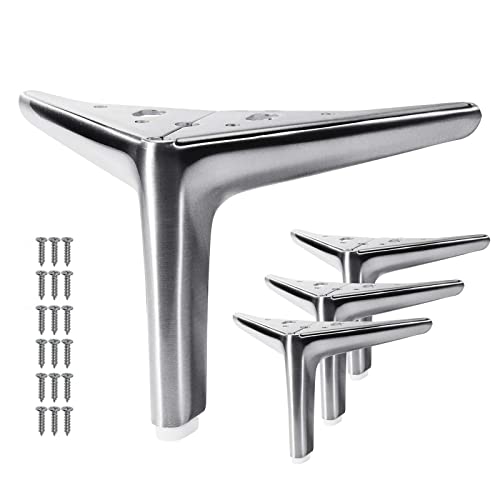 VEHCIL 6-inch Furniture Legs, Legs for Furniture Set of 4, Modern Furniture Feet for Cabinet Sofa Couch Table Chair Bed Dresser Wardrobe Risers DIY Replacement-Brushed Satin Nickel