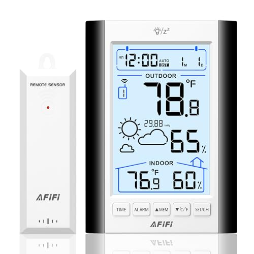 Indoor Outdoor Thermometer Hygrometer Wireless Weather Station - Inside Outside Thermometers Hygrometer Monitor with 330ft Remote Sensor, Battery Powered, Backlight Display (Black)