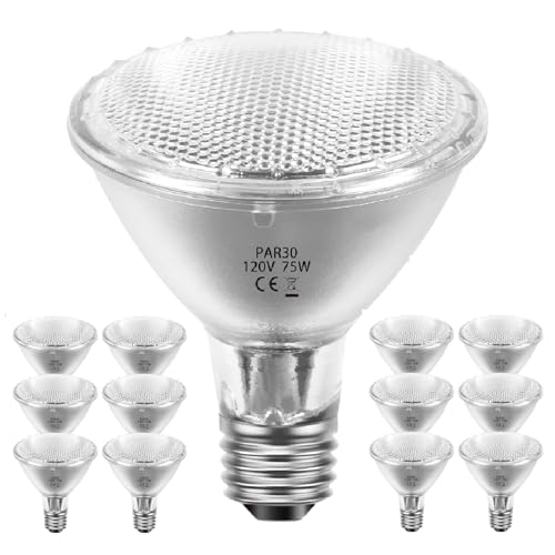 Jaenmsa Par30 Halogen 75 Watt Flood Light Bulbs 120V,Par30 Long Neck Halogen Bulbs 12 Pack,E26 Base Dimmable 2700K Soft White Halogen Light Bulb for 5-6in Recessed/Ceiling Cans/Accent/Tracking Lights