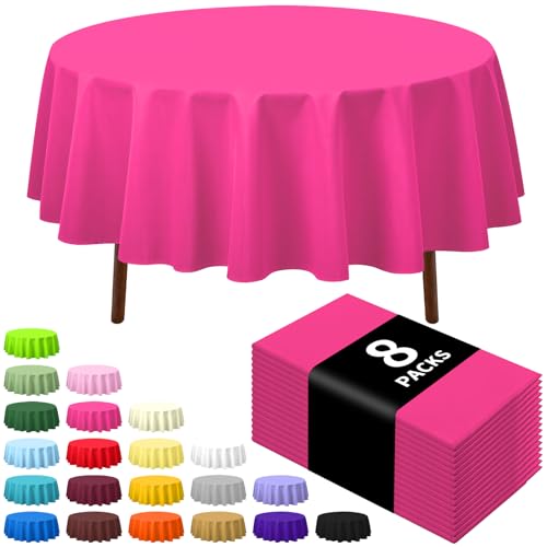 CXPSINC 8 Pack Premium Disposable Plastic Tablecloth 84" Round Table Cover for Birthdays Weddings Christmas Anniversary (Fuchsia)