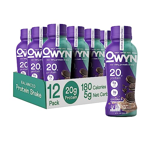 OWYN Only What You Need Plant Based Protein Shake, 20g Vegan Protein from Organic Pumpkin Seed, Flax, Pea Blend, Prebiotic Supplement, Superfood Greens, Gluten & Soy-Free (Cookies & Creamless)