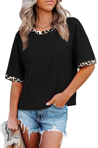 WIHOLL Short Sleeve Shirts for Women Summer Clothes Color Block Ladies Tops and Blouses Dressy Casual Teacher Outfits Cheetah Leopard Print S