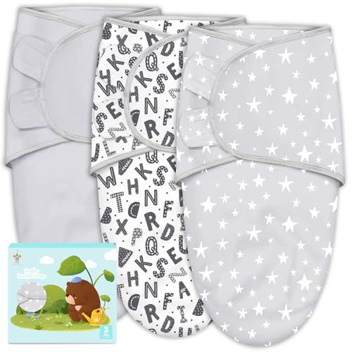 Cute Castle 3-Pack Baby Swaddle Sleep Sacks - Newborn Swaddle Sack - Ergonomic Baby Swaddles Blanket Warp for Boys and Girls - Baby Essentials (0-3 Months - Gray, Letters, Stars)