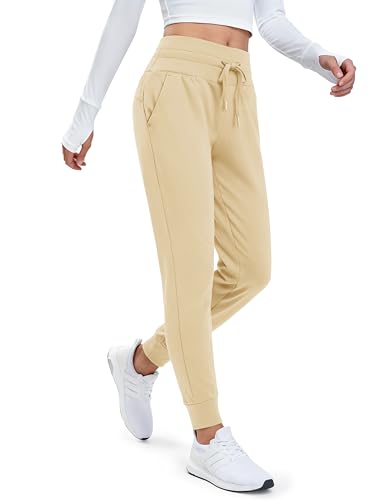 MAGCOMSEN Womens Fleece Lined Sweatpants Water Resistant Hiking Thermal Winter Athletic Joggers Pockets Light Khaki L