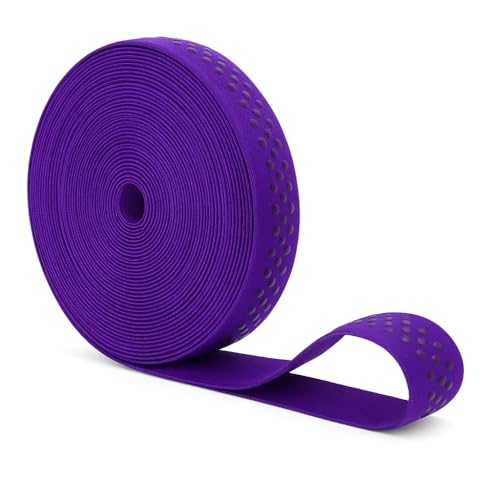 Mandala Crafts 1 Inch Elastic Silicone Gripper Tape for Clothing - 10 Yds Dotted Non Slip Elastic Band for Sewing - Purple Silicone Flat Fabric Stretchy Ribbon Straps