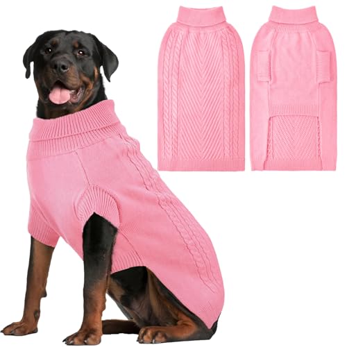 Lonepetu Dog Sweaters for Large Dogs Winter Clothes,Soft and Warm Girls Fleece Turtleneck Knitwear,Christmas and New Year Gift for Labrador,Golden Retriever,Doberman (Pink 2XL)