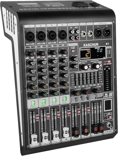 4 Channel Audio Mixer Sound Board Console System with 99 Bit DSP, 48V Phantom Power, Bluetooth - USB MP3 Computer Input - DJ Mixer for DJ Karaoke Studio Streaming Recording