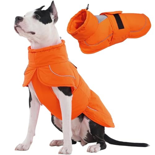 Kuoser Dog Winter Coat, Dog Jackets for Large Dogs, Winter Waterproof Big Doggie Coat, Reflective Dogs Cold Weather Coats, Turtleneck Pet Puffer Jacket Snowsuit Hunting Vest Clothes with Harness Hole