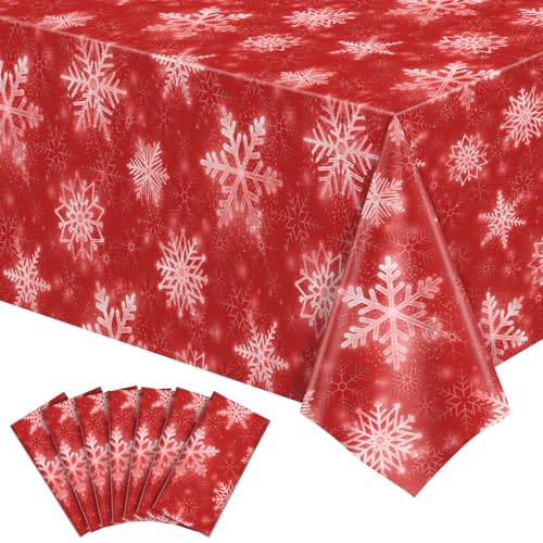 NatNarr 6 Pack Winter Snowflake Plastic Tablecloth, 54 x 108Inch Red and White Snowflake Table Cover Disposable Waterproof Holiday Tablecloth for Winter Holiday New Year Birthday Party Supplies Decor
