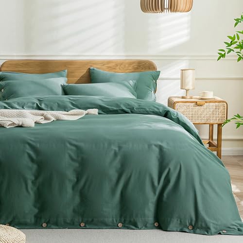 JELLYMONI Cotton Duvet Cover Twin Size - Dark Green Comforter Cover with Button 100% Washed Cotton 2PCS Breathable Soft Solid Bedding Set Duvet Cover 68×90in & 1 Pillowcase (NO Comforter)