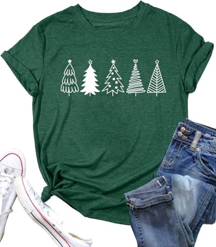 Woffccrd Womens Funny Christmas Shirts Merry and Bright T-Shirts Christmas Tree Shirts Merry Christmas Graphic Tee Tops (XL,2483 Green)