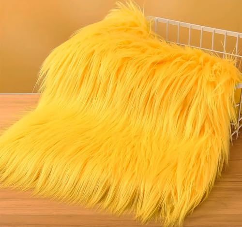 Faux Fur Fabric Square Patches for Crafts, Sewing, Costumes, Seat Pads (Yellow, 20 x 20 Inch)