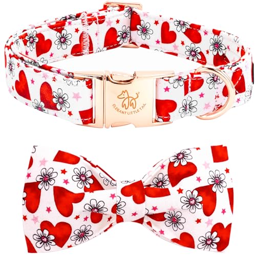 Elegant little tail Valentine's Dog Collar, Cute Pink Heart Pet Collars Soft Dog Puppy Collar Female or Male Adjustable Cotton Pet Collars with Bow for Small Medium Large Dogs