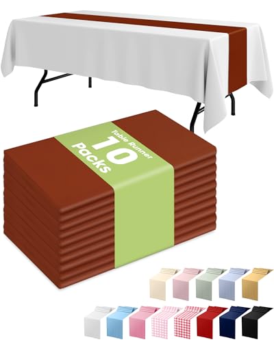 Pureegg Terracotta Plastic Table Runners - 10 Pack, 14'' x 108'', Water Resistant & Disposable Centerpiece Decorations for Table Cloth, Wedding, Birthday, Holiday, Baby Shower, Party, Home Decor